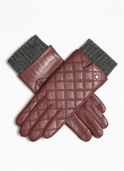 Women's Quilted Leather Gloves with Knitted Cuffs