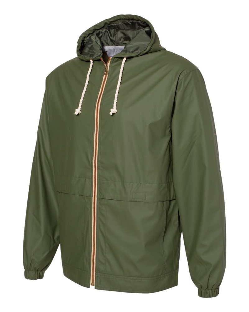 Self-fabric hook-and-loop cuff closures and an adjustable drawcord hem seal out precipitation