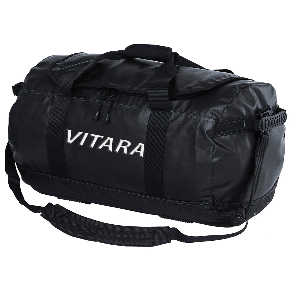 Main compartment includes one large zippered mesh accessory pocket and two PE fabric internal wet area compartments with ventilation eyelets