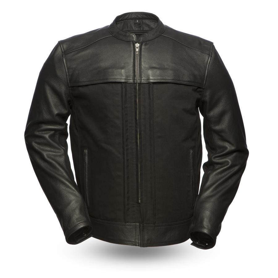 Center zipper scooter style with a banded collar and canvas body
