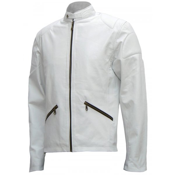 A simple and stylish Cafe Racer White Leather Jacket Mens. Along with a Tab-Nehru Style collar, the jacket has a YKK Branded Front Zipper Closure, 2 slanted side zip pockets, and two inner pockets. Easy to wear and extremely versatile. A pleasure to look at and an even greater pleasure to use. Extraordinary quality and 100% real leather.