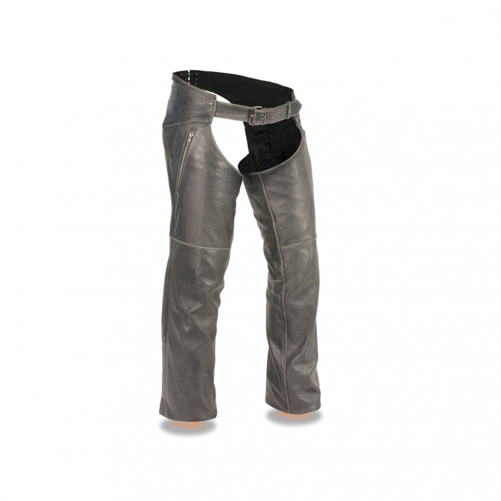 MEN’S VINTAGE DISTRESSED GREY SLATE CHAP W/ DEEP THIGH ZIPPERED POCKETS