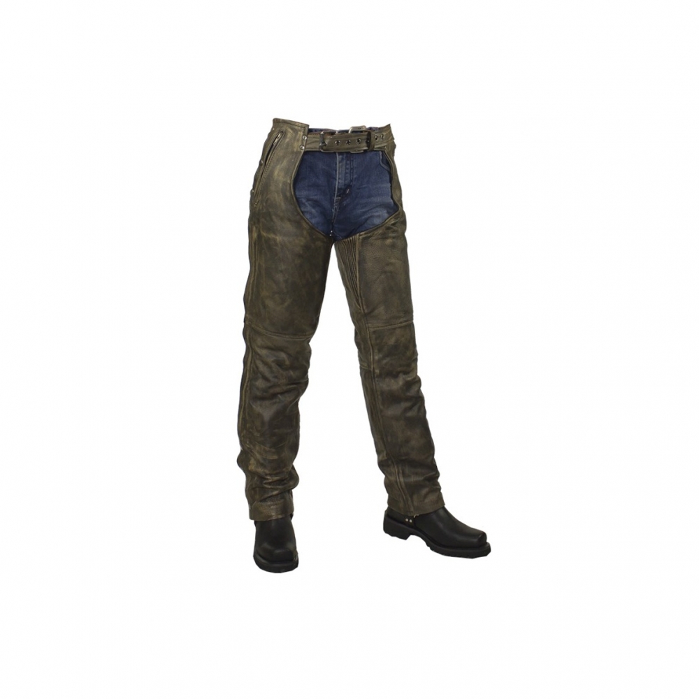 The two deep, button-snap pockets and the two large zippered pockets make bringing items along for the ride a breeze. Thanks to the zippers that run along the inseam to the button-snaps at the hem, a warm quilted zip-out lining, leather lacing on the back, elastic gathering at the inner thighs, a soft mesh lining, and a large leather belt with a metal roller buckle you’ll feel comfortable and relaxed on your very next ride.