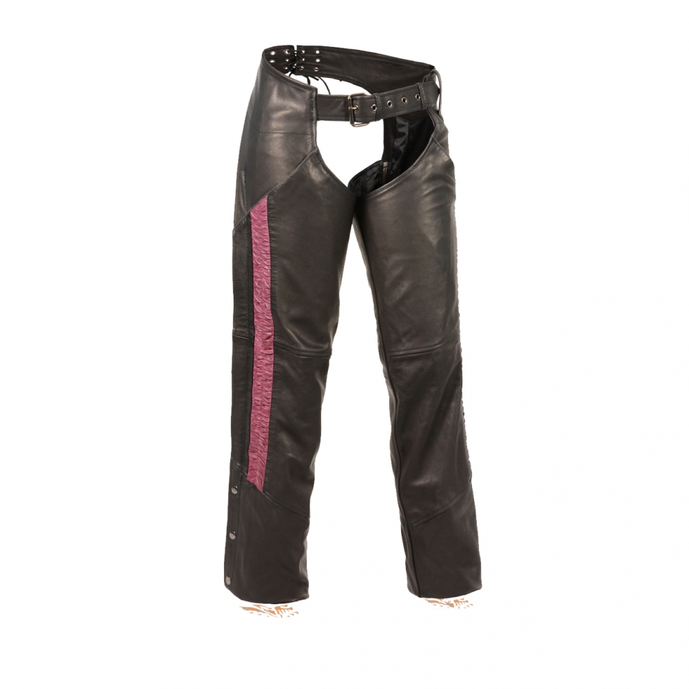 LADIES HIP SET POCKET CHAP W/ PINK CRINKLED LEG STRIPING