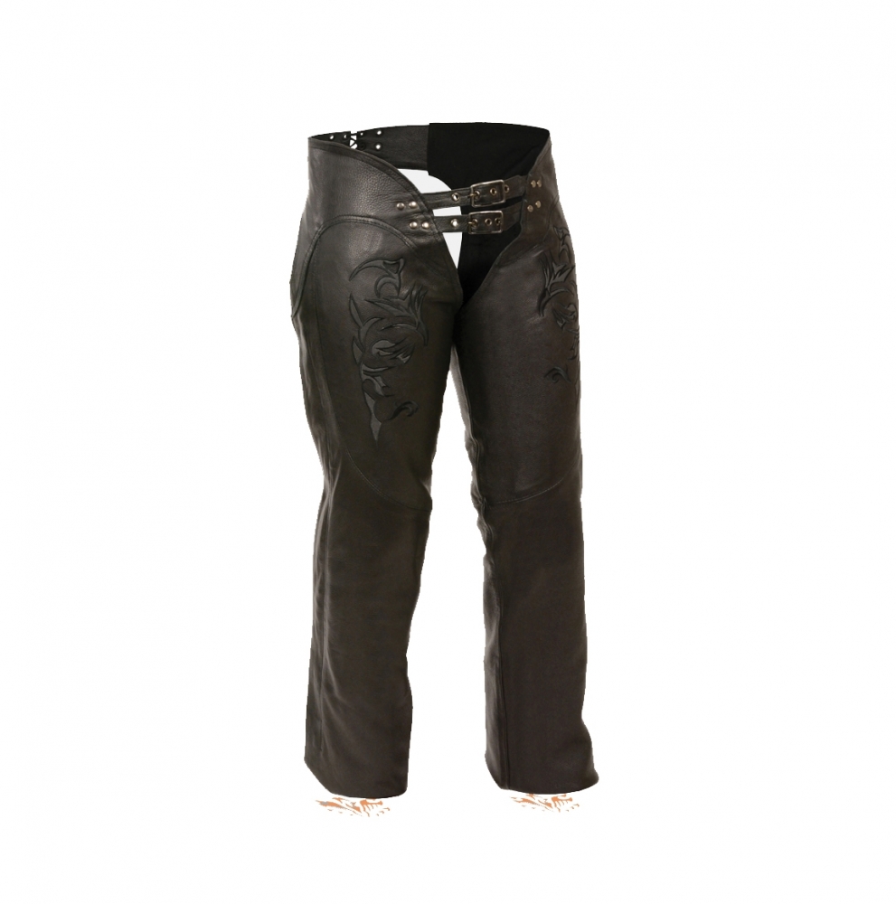 Women Leather Chaps for Motorcycle W/Black Embroidery
